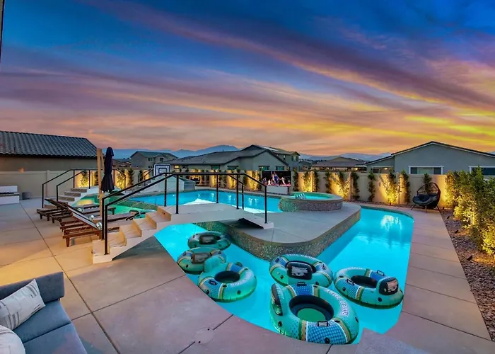 Die Villa Lazy River Waterslide Gameroom Pool 7Br Sleeps 18 Coachella liegt in ungefähr 6 km Entfernung vom Coachella Valley History Museum und bietet Zugang zu verschiedenen Sehenswürdigkeiten in der Umgebung.